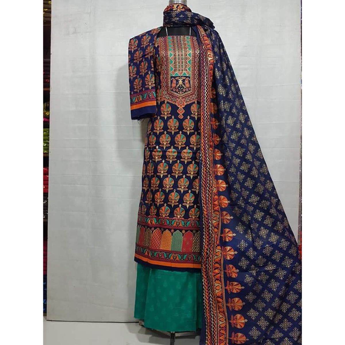 - Product Type :ডিজিটাল অরবিন্দু বয়েলের উপর রং পাকা স্ক্রীন প্রিন্ট থ্রি পিচ-Skin Print Cotton Three Piece For Women