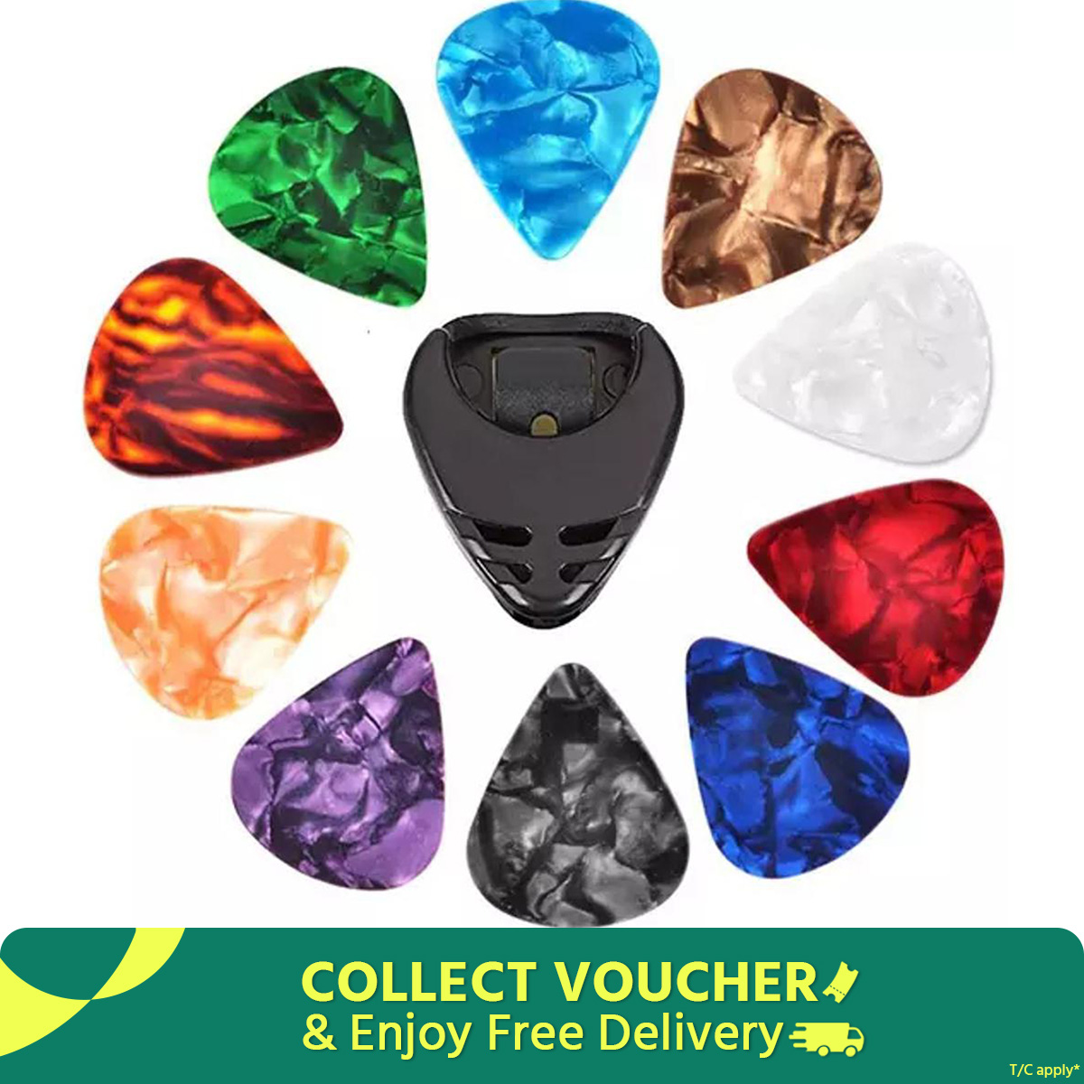 - 10Pcs Guitar Picks & Guitar Pick Holder Set for Acoustic Guitar Electric Guitar Bass Ukulele Stick-on Holder Random Color