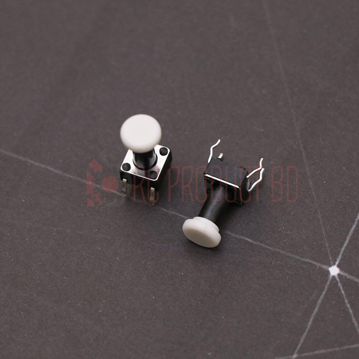 Long Head With White Cap Momentary 4Pin Tactile Tact Push Button Switch 4 Pin 6x6x12mm On Off PCB DIP Touch Switch Push Button Switch Square Push Switch Light Switch