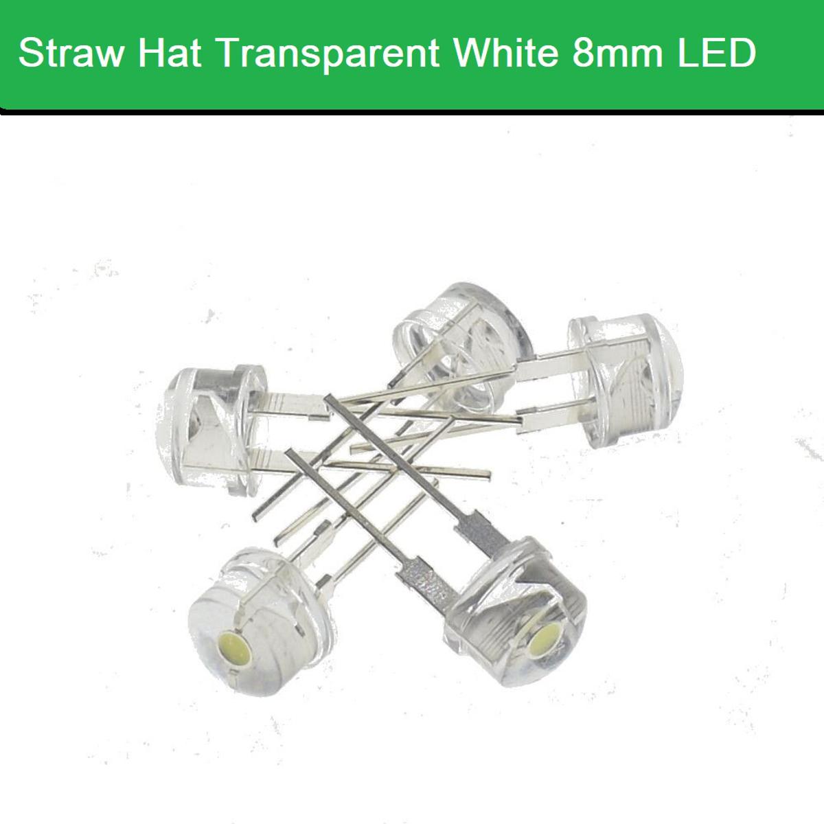 Description: Straw Hat Clear Transparent White 8mm LED Super Bright LED Lamp Wide Angle