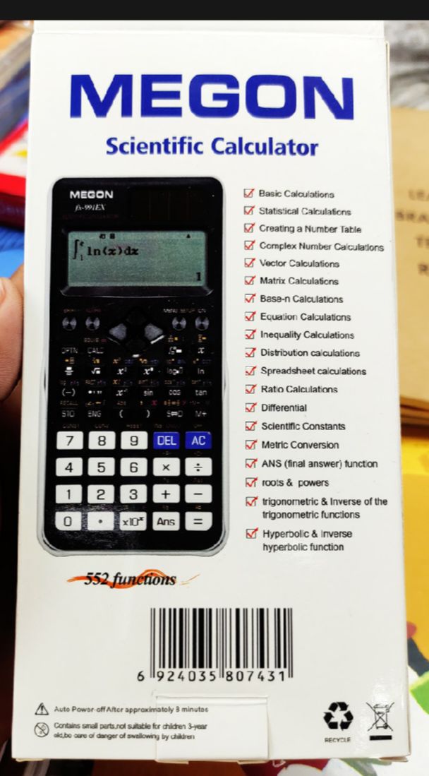 The Megon Fx-991EX Scientific Calculator is a high-performance tool designed for students and professionals. It features a sleek design and a high-resolution display for better readability. With over 552 advanced functions, including calculus, algebra, statistics, and engineering calculations, it is perfect for school, college, and exam use. The Fx 991 ex calculator offers fast processing and intuitive navigation, making complex calculations easier. Its durable construction ensures long-lasting performance, and it runs on both solar and battery power for convenience. Backed by a 2-year warranty, the Megon guarantees reliability and peace of mind. Whether you're tackling math homework or scientific problems, this calculator delivers accurate results every time. A trusted choice for serious learners and professionals alike.