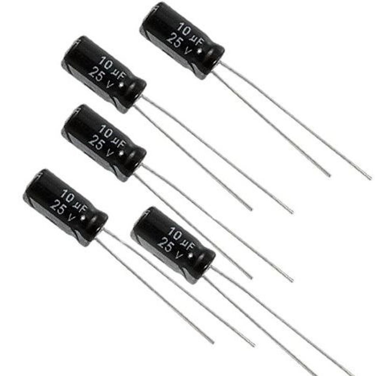 10uF 25V RADIAL Electrolytic Capacitor 10uF 25V Radial Polarized Aluminum Electrolytic Capacitors 2 Pin Leads Connections Leg