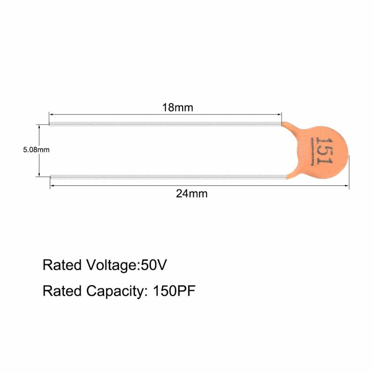 - Rated Capacity: 151 150pF-; Tolerance: ±10%.