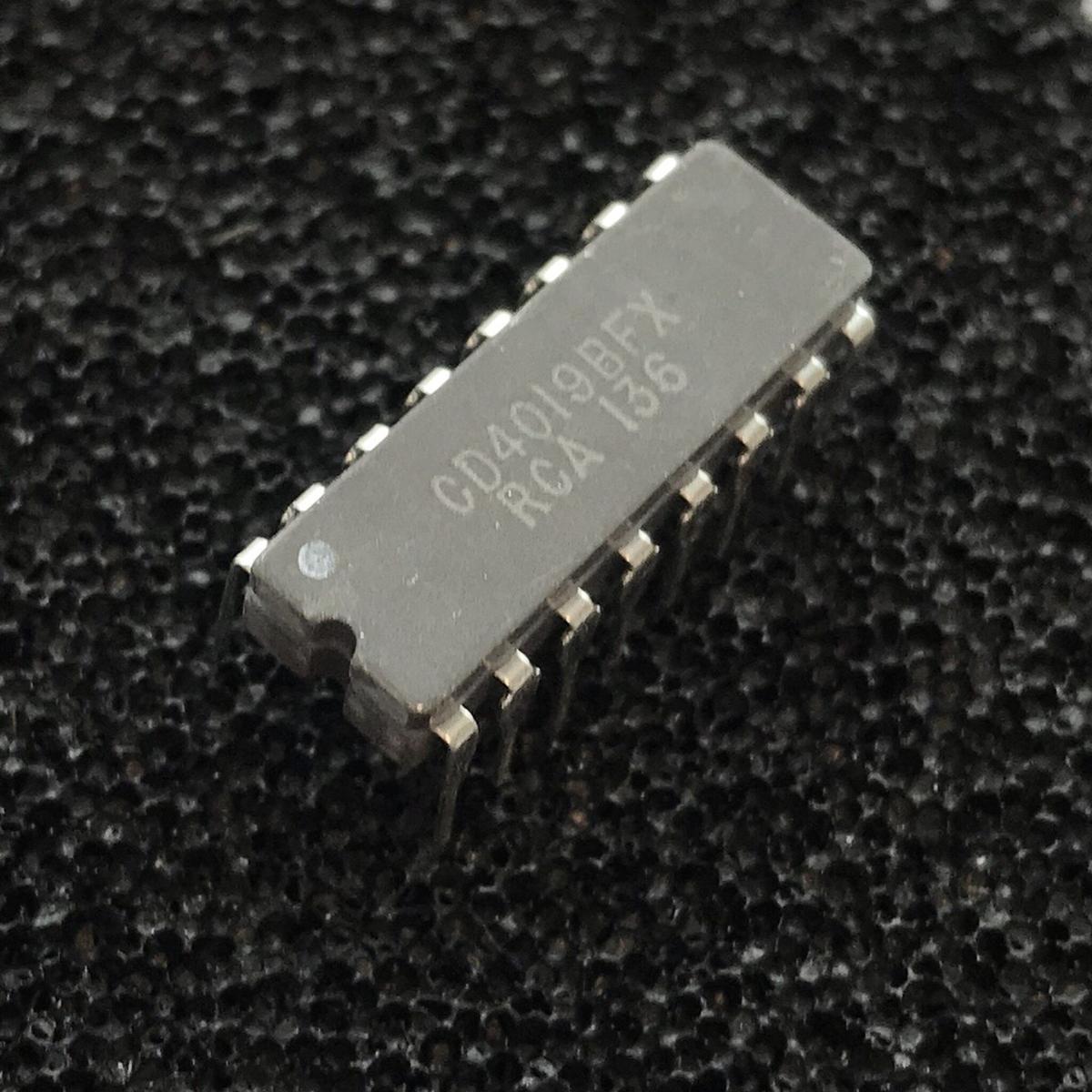The CD4019B is a complementary MOS quad AND-OR select gate. Low power and high noise margin over a wide voltage range is possible through implementation of N- and P-channel enhancement mode transistors. These complementary MOS (CMOS) transistors provide thebuilding blocks for the 4 ``AND-OR select'' gate configurations, each consisting of two 2-input AND gates driving a single 2-input OR gate. Selection is accomplished by control bits KA and KB. All inputs are protected against static discharge damage.