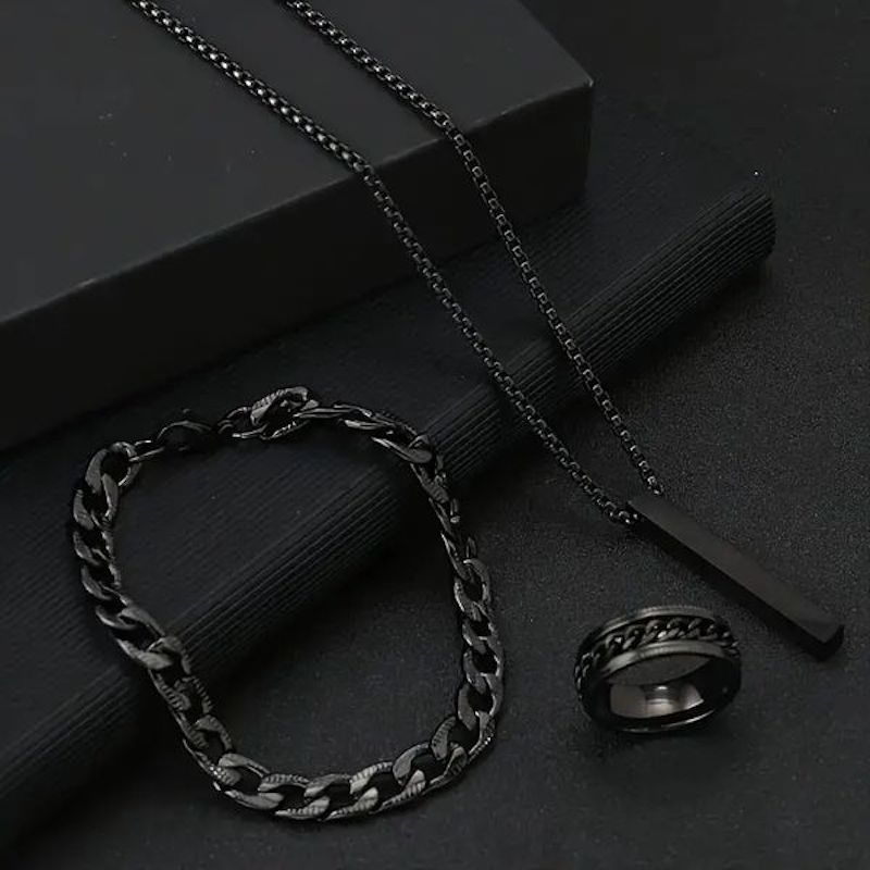 3-Piece Mens Stainless Steel Glamour - Fashionable Pendant Necklace Bracelet & Ring Set for Men