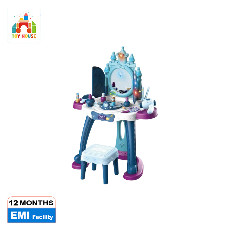 35 pcs Girls pretend play dressing table toy set with makeup kits and many more accessories automatic door open by sensor light and music