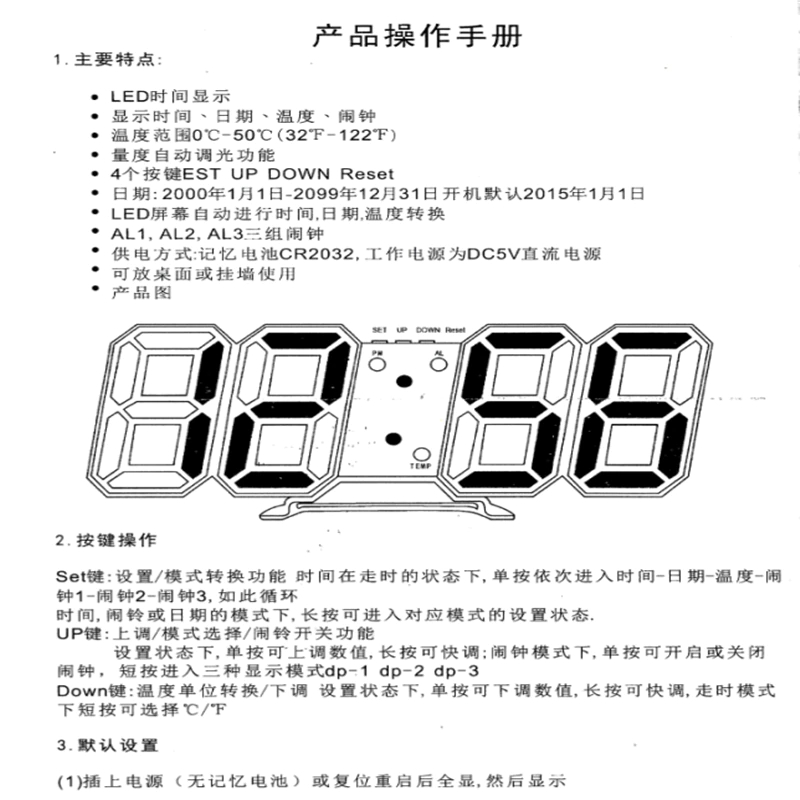 - Snooze function,5-60 minutes(The default interval time is 5 minutes)