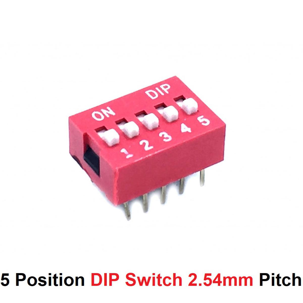 Description: 5 Position DIP Switch 2.54mm Pitch Horizontal DIP Switch Five Positions Piano Type Dial DIP Slide Switch For Electronics Circuit PCB