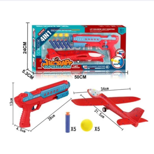 4 in 1 Functionality: The toy offers soft bullet shooting and round ball shooting options, providing versatile shooting experiences. Soft Bullet Shooting: Load soft bullets and shoot them at targets for safe and engaging play. Round Ball Shooting: Load round balls and launch them for a different shooting experience. Suitable for Ages 8+: Designed for kids aged 8 and above, providing age-appropriate fun. Aircraft-Inspired Design: The toy features an aircraft-inspired design, adding a cool and futuristic touch. Safe and Durable: Made from high-quality materials, ensuring safety and durability during play. Easy to Use: The toy is easy to operate, making it suitable for kids of various skill levels. Promotes Active Play: Encourages physical activity, hand-eye coordination, and target aiming skills. Portable and Convenient: Lightweight and easy to carry, allowing for play anywhere. Exciting Playtime Fun: Experience action-packed shooting adventures with this versatile and engaging toy.