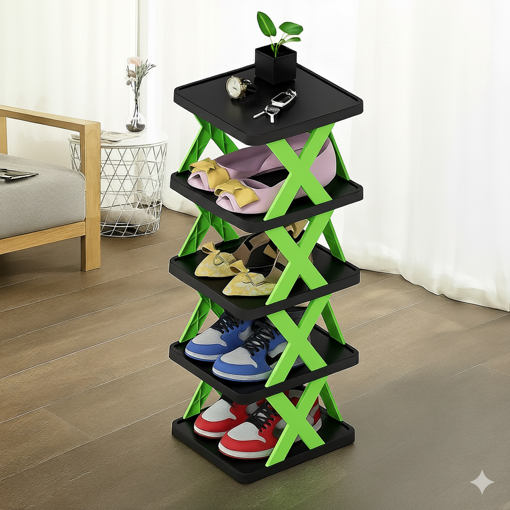 Keep your shoes organized and your home clutter-free with this 5-Layer Shoe Rack. Its stylish and sturdy design is perfect for modern homes. Ideal for families who want to save space while keeping footwear clean and accessible. Each layer offers ample space for different shoe types, from high heels to boots. Lightweight yet strong, this rack can be moved easily and used anywhere in your home.