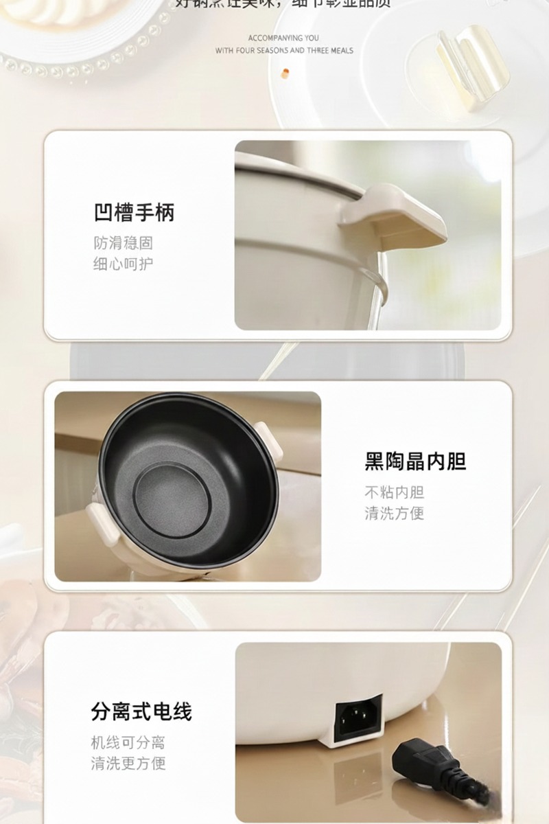 • Non-stick pot bottom :The pot bottom is made of non-stick material, making it easy to clean and preventing food from sticking.