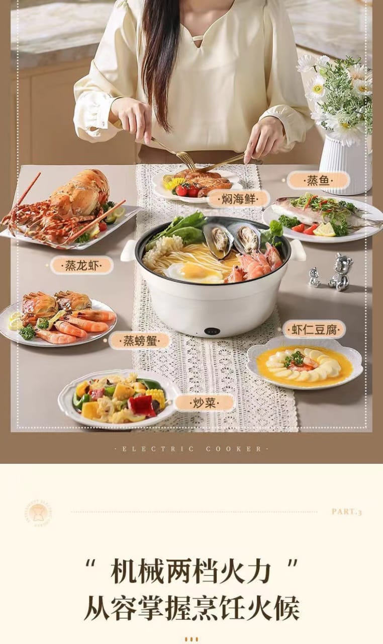 • 220V voltage :With a voltage of 220V, this multi-cooker is compatible with most electrical outlets, making it convenient to use.