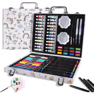 Easy to Carrying & Safe for Children: This 16.1''*12.6''*2.1'' art kit with a beautiful form-fitting cute carrying case perfec for schools, outdoor and at home. Kids could create and capture their painting inspiration anywhere. Each crayons, pencils and pastels in this art box with high quality is no harm for children.
