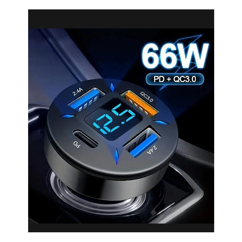 - 66W Car Charger 4 In 1 Fast Charging 3 USB PD