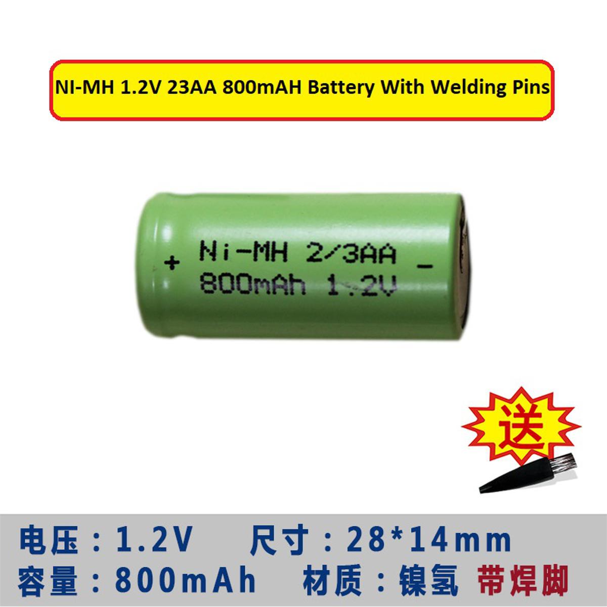 Description: Rechargeable NI-MH 1.2V 2/3AA 800mAH Batteries With Welding Tab Pins