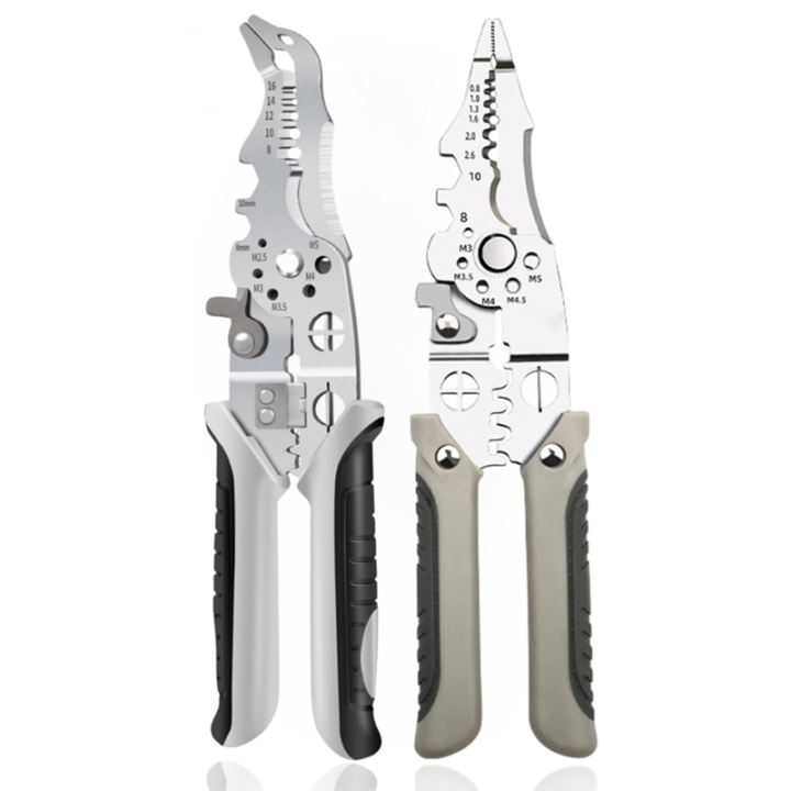Wide Application: This self-adjusting wire stripper is perfect for electrician, DIY, industrial and home use. It is suitable for stripping, cutting off and crimping insulated terminals of copper wires, aluminum wires, cables, multi-strand sheathed wires, and bare terminals. The Wire Stripper - Multifunctional Stainless Steel Wire Cutter and Stripper Plier (8-inch) is a must-have tool for professionals and DIY enthusiasts. Engineered with industrial-grade stainless steel, this versatile tool is perfect for a wide range of tasks, including wiring, looping, cutting, splitting, crimping, gripping, twisting, and nail pulling. Its durable metal construction ensures long-lasting performance and resistance to wear, making it ideal for electricians, technicians, and home users alike.