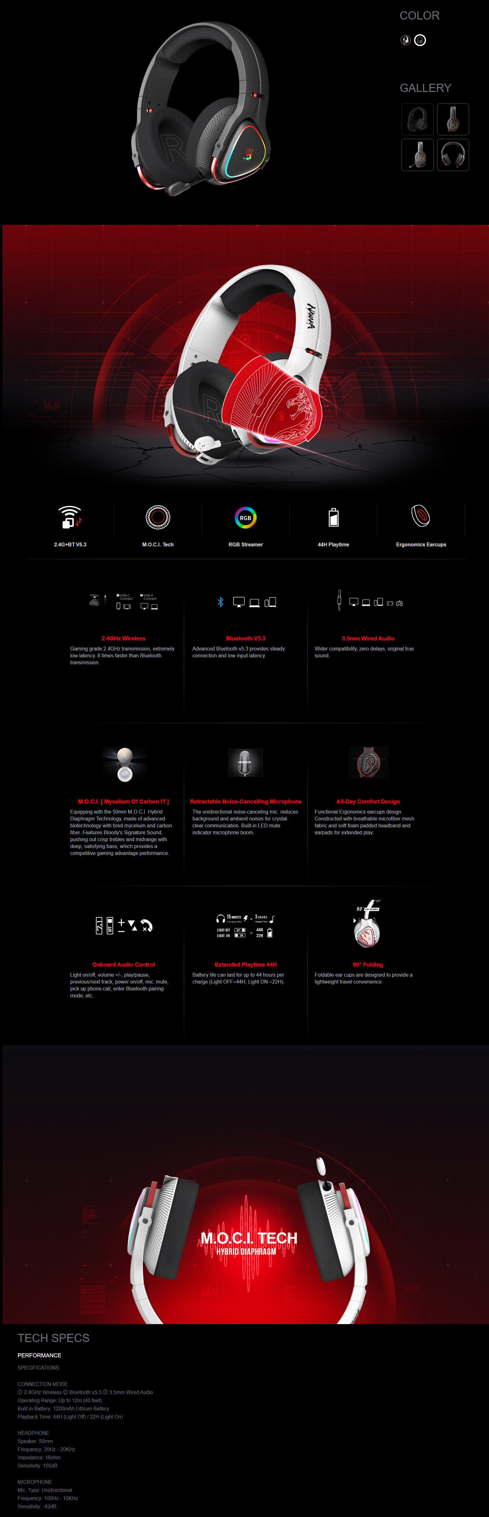 ① 2.4GHz Wireless ② Bluetooth v5.3 ③ 3.5mm Wired Audio