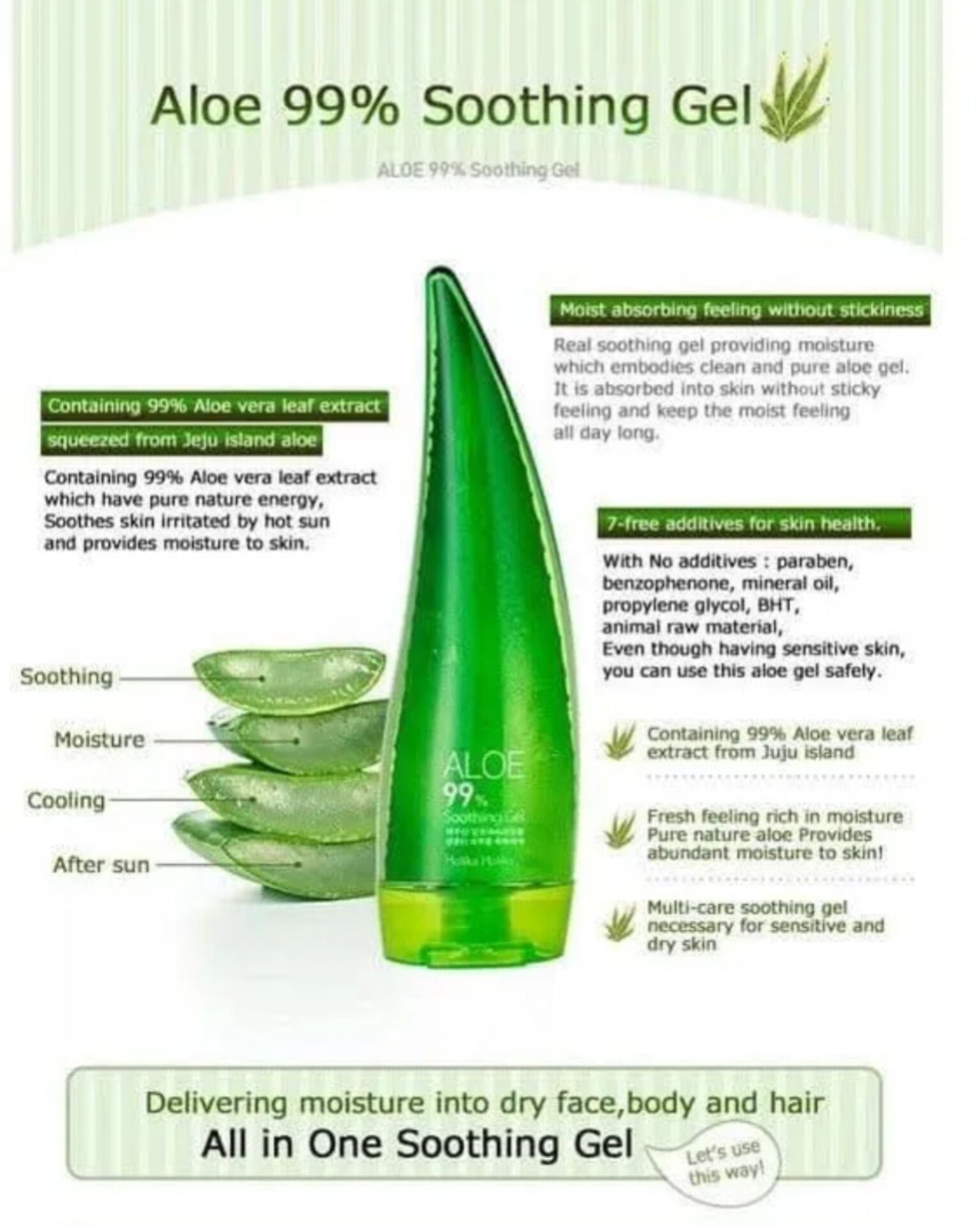 Can I use the New Aloe Vera Soothing & Moisture Gel on my body? Yes, New Aloe Vera Soothing & Moisture Gel is the perfect skincare product to improve your skin elasticity and texture. It makes your skin’s surface brighter and smoother. This soothing & moisturizer gel can be used for both the face and body.
