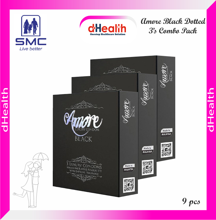 আমোর ব্ল্যাক লাক্সারি কনডম - 3 এর কম্বো প্যাক (3x3=9pcs)
