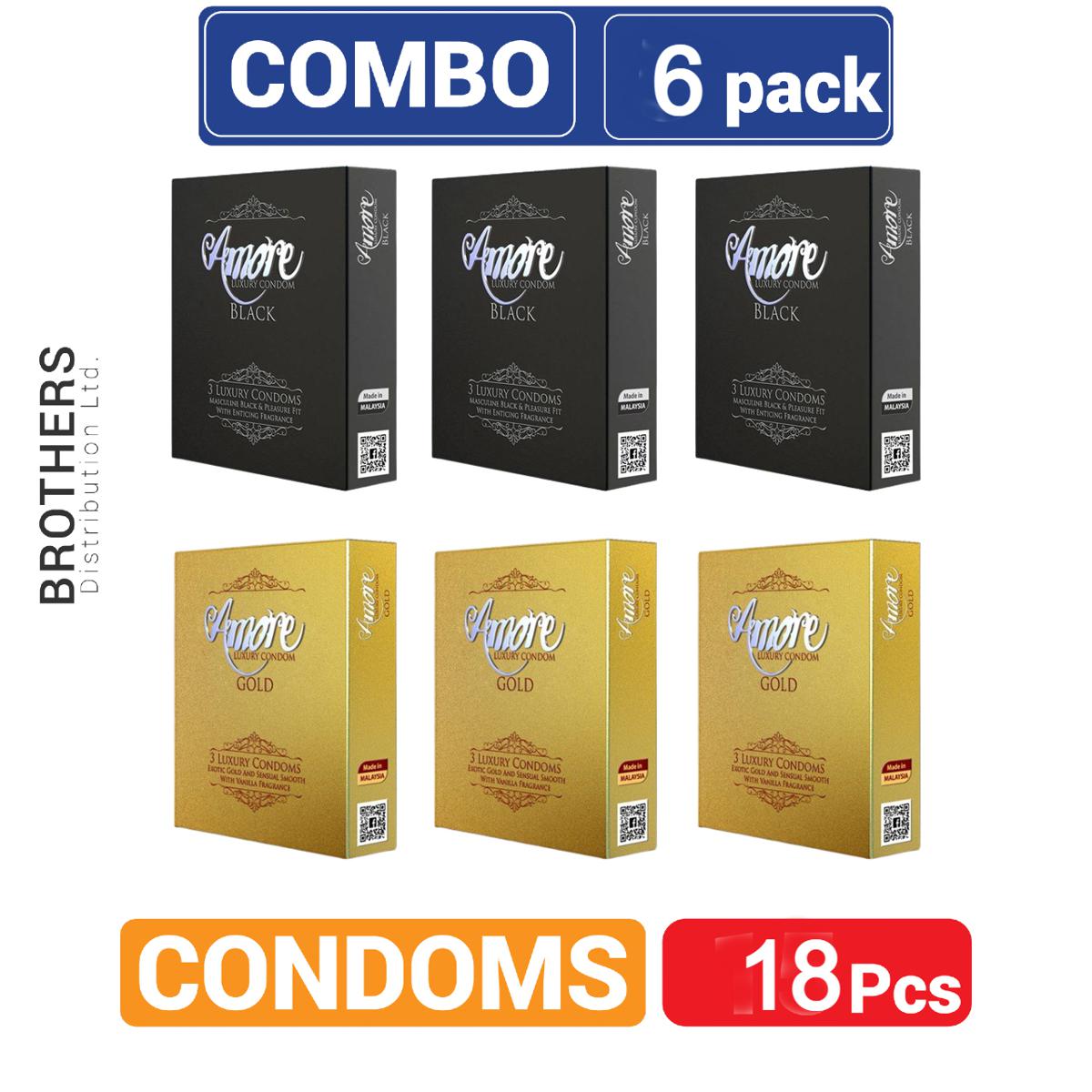 Amore_Condom Mix - 3 Pack Amore_Gold & 3 Pack Amore_Black Condom - 3x6=18pcs Condom