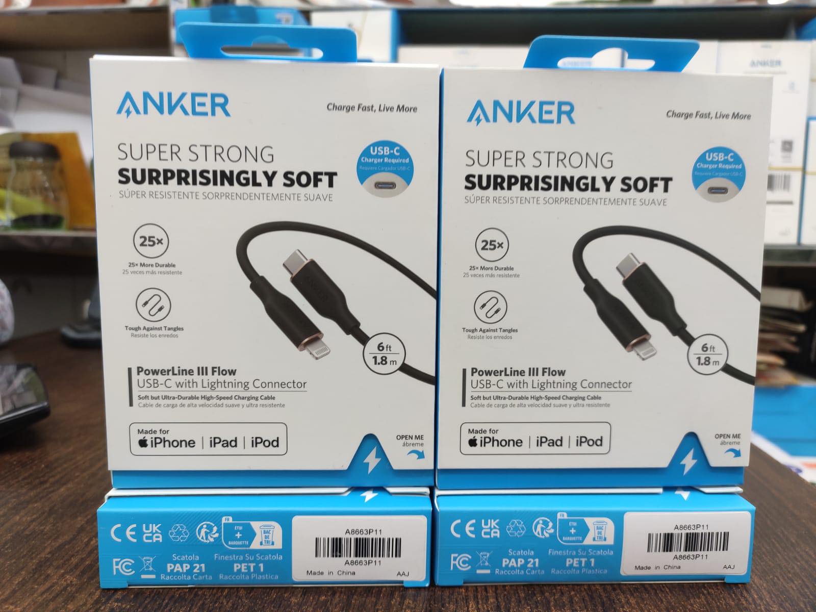 - What You Get: Anker 643 USB-C to USB-C Cable (Flow, 6ft Silicone) / PowerLine III Flow USB-C to USB-C Cable, silicone cable tie x1 and Anker 641 USB-C to Lightning Cable (Flow, 6ft Silicone) / PowerLine III Flow USB-C with Lightning Connector, silicone cable tie x1, welcome guide, our worry-free 18-month warranty, and friendly customer service.