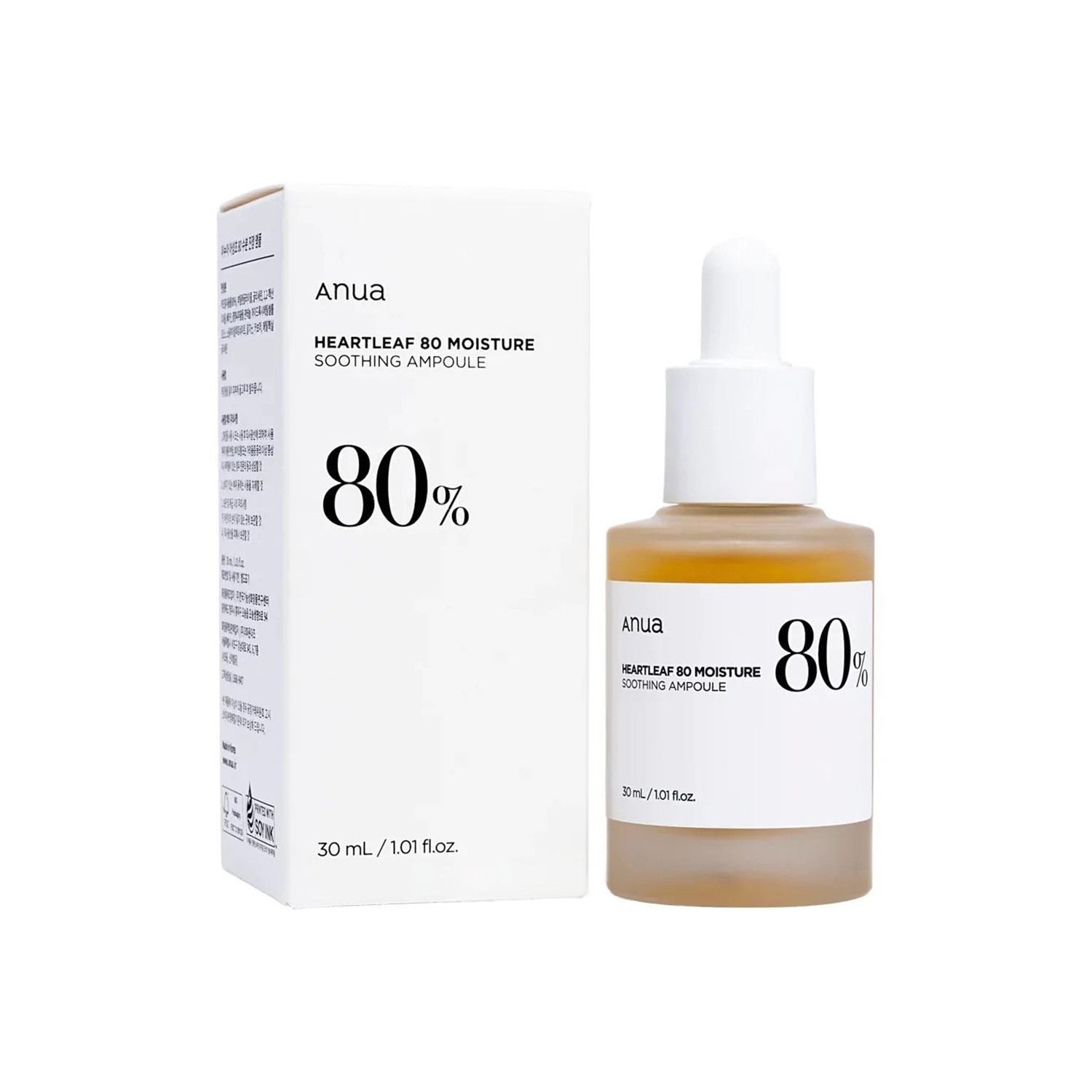 ANUA Heartleaf 80% Moisture Soothing Ampoule is a Korean face ampoule formulated to quickly calm and soothe sensitized skin or redness-prone areas. With 80% Houttuynia Cordata (Heartleaf) extract, a plant known for its anti-inflammatory and antibacterial properties, this ampoule is perfect for reducing irritation and promoting the skin’s natural recovery. Enriched with betaine, panthenol, and hyaluronic acid, it provides deep hydration and effective protection against external factors.