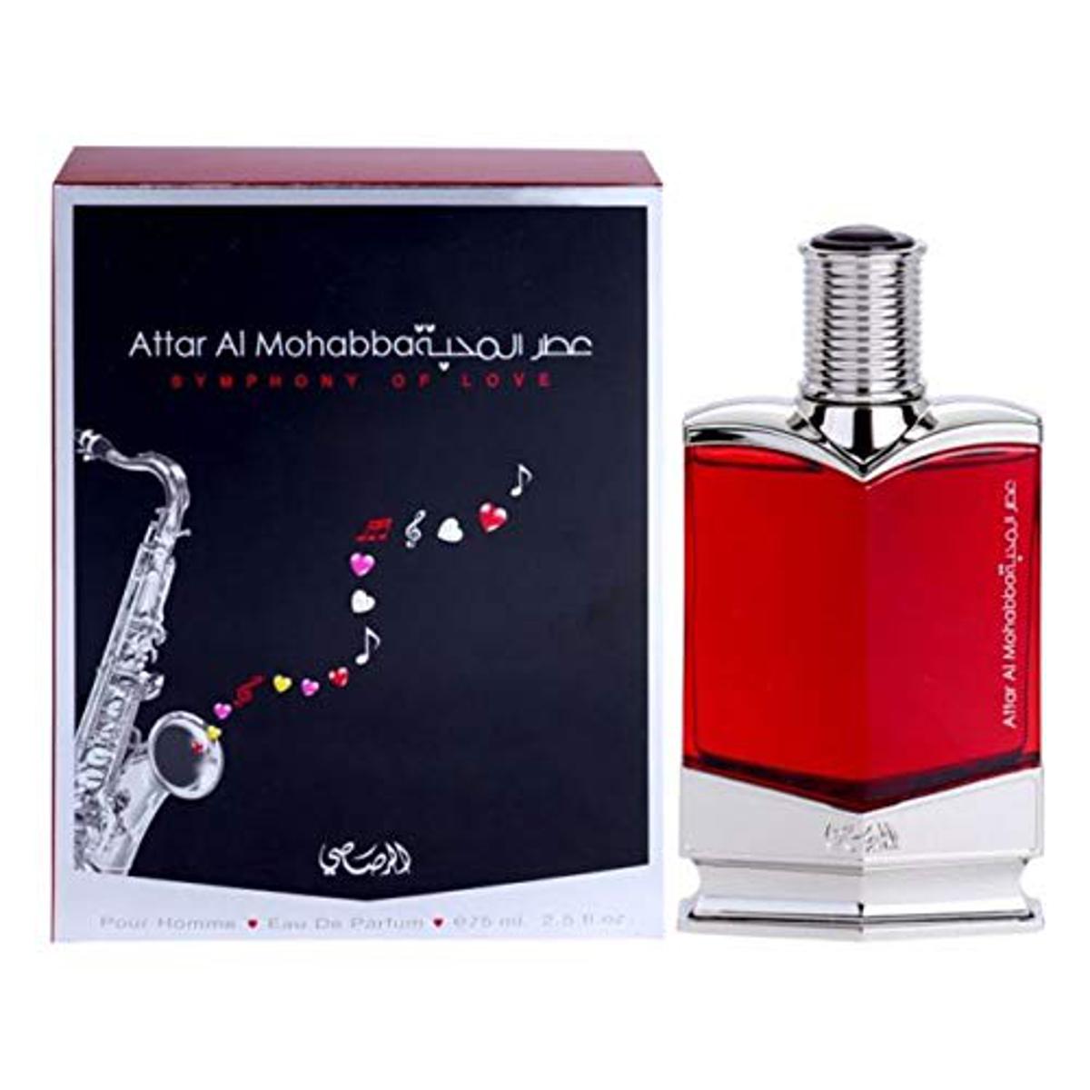 Top notes are bergamot and neroli.Middle notes are jasmine, vanilla and ylang-ylang.Base notes are styrax, musk and sandalwood.Attar Al Mohabba Male by Rasasi is an Oriental fragrance for men. Attar Al Mohabba for men is a tribute to the universal and eternal feeling of love. It symbolizes innocence, portrays romanticism and evokes the magical moments of love. The beautiful and shimmering bottle resonates with deep red and silver, reflecting love and serenity. The floral perfume opens joyfully with bergamot, neroli and grapefruit inflecting this perfume with a quality.