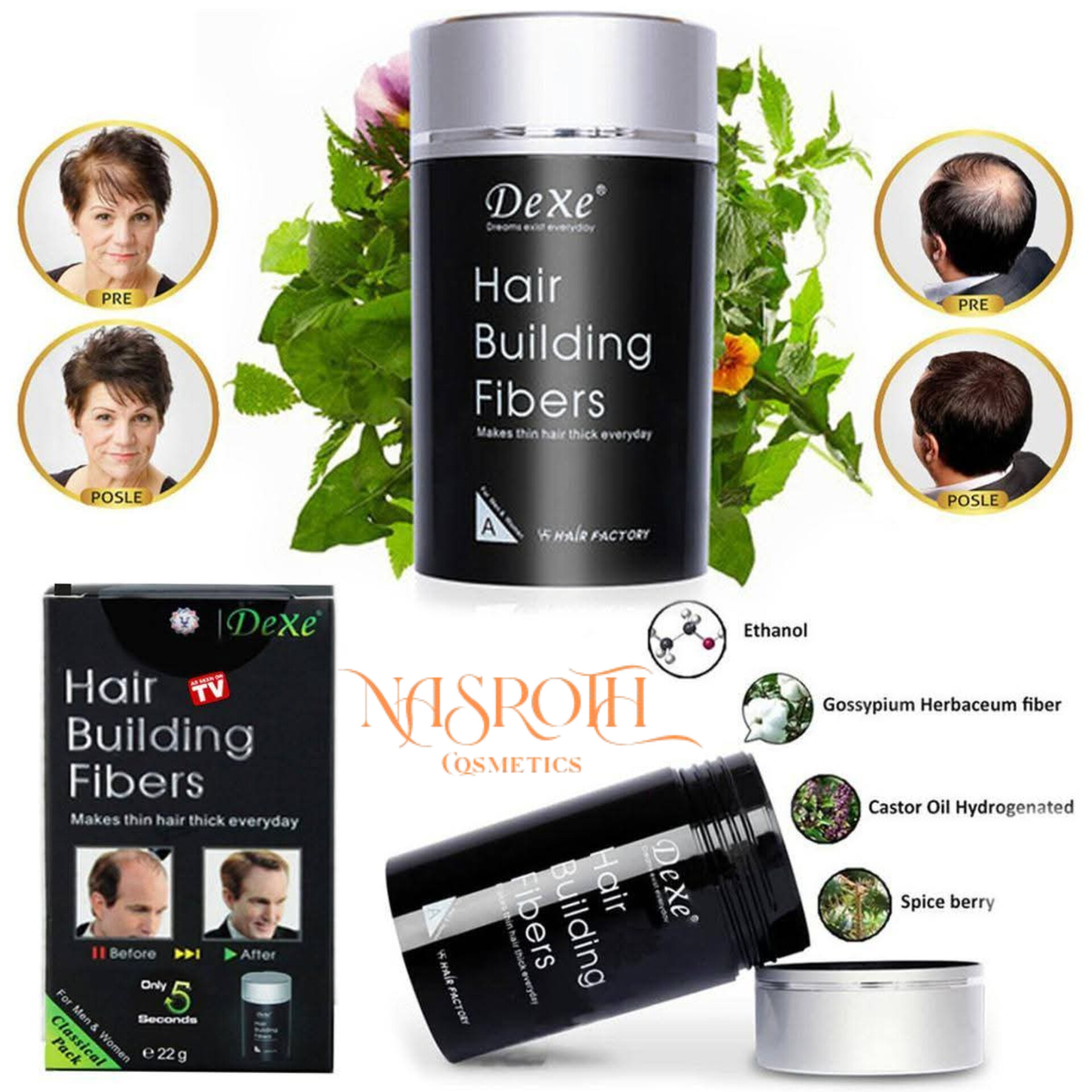 Dexe hair building fibers is also named hair thickening fibers, fiber hair building and hair building fibers oil. It is some kind of hair loss treatment, for hair loss solutions, it can help the hiar grow just like hair loss concealer powder.