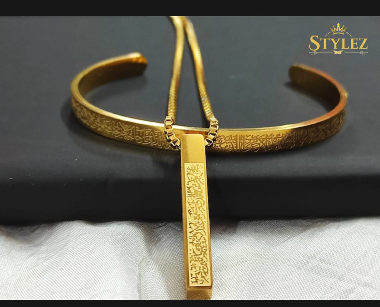 Ayatul Kursi Stainless Steel Cuff Bangles for Men and Women - Simple Carve Islamic Jewelry 2 Pcs Set