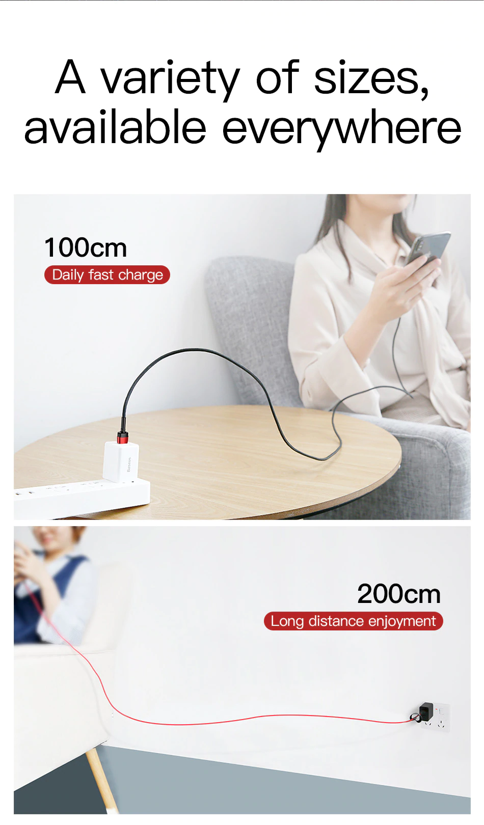 The reinforced connectors are designed to resist wear and tear, preventing breakage at stress points. Whether you’re charging your iPhone or transferring files to your computer, the Baseus Lightning Cable delivers efficiency, safety, and reliability.