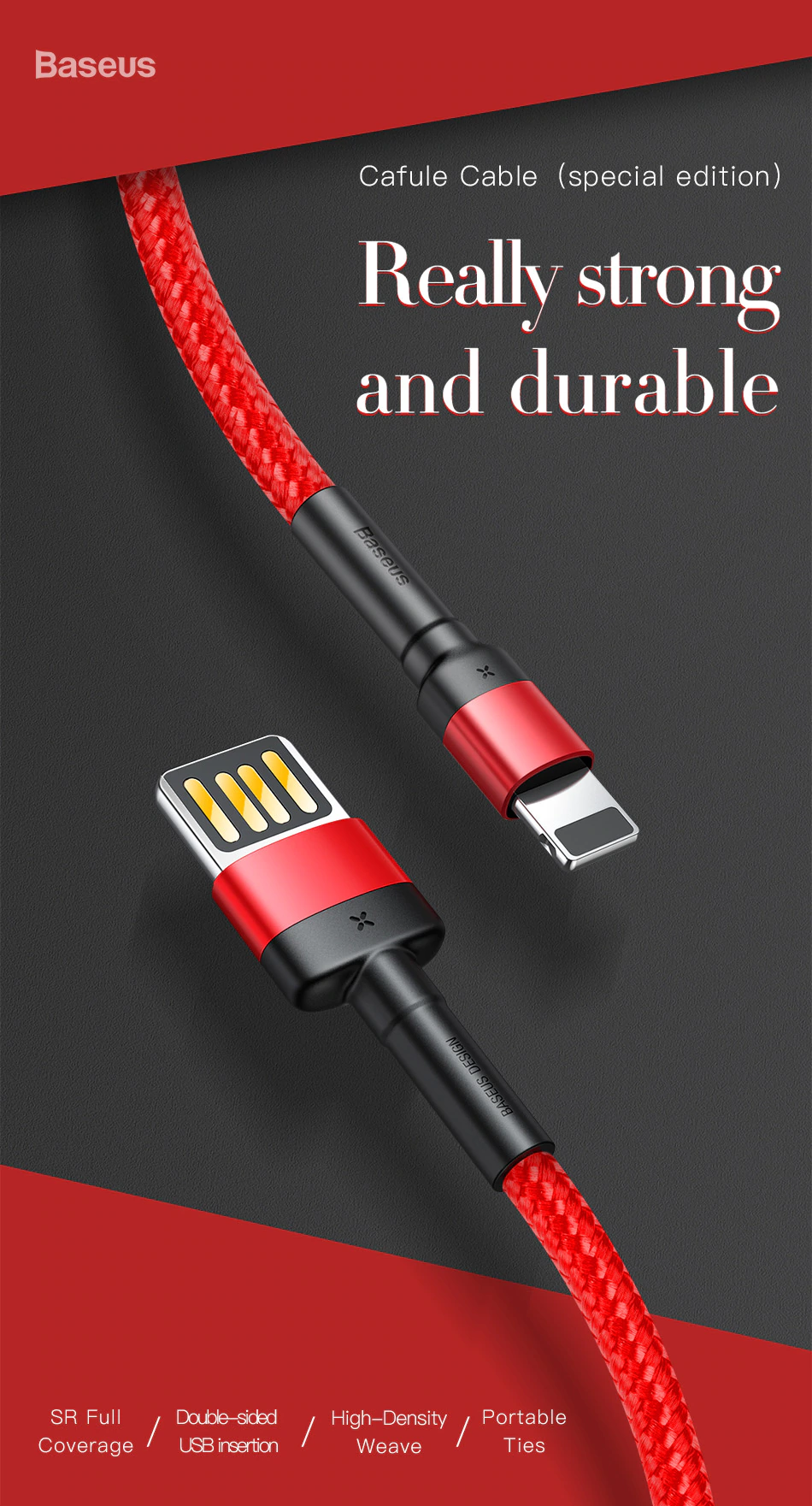 Baseus Durable Fast Charging USB to Lightning Cable – Nylon Braided Data Cable for iPhone/iPad