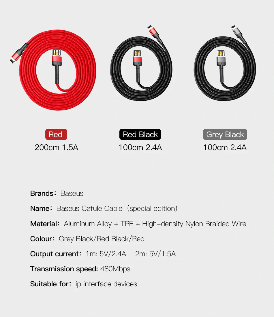 Upgrade your charging experience with the Baseus USB to Lightning Cable. Made with premium nylon braided material, this cable ensures long-lasting durability and tangle-free use. It supports fast charging and stable data transmission, making it perfect for both personal and professional use.