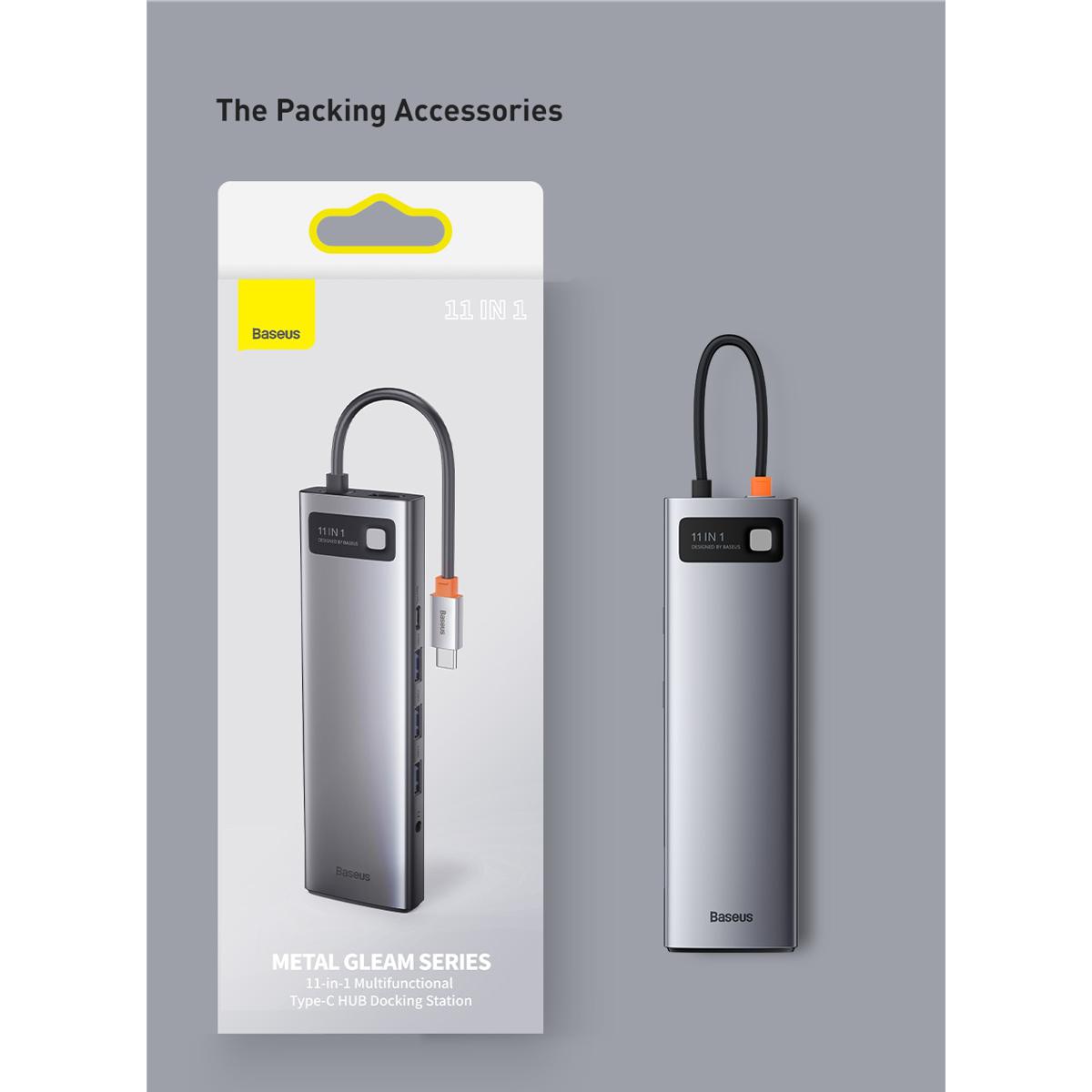 - Baseus 11-in-1 Multifunctional Type-C HUB Docking Station HDMI/VGA Transmission RJ45 SD/TF 3.5mm Audio Port 100W PD Fast Charging 3-screen Display 4K HD for Apple Pad OS Windows Systerm