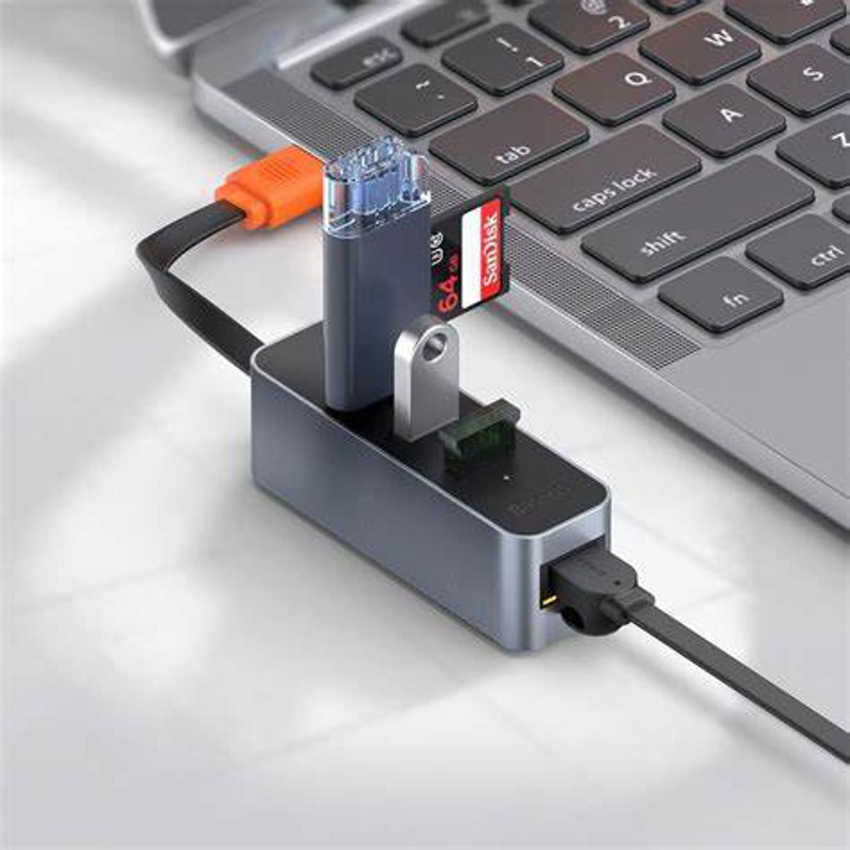 - Baseus Steel Cannon Series USB A to USB3.0*3+RJ45 HUB Adapter