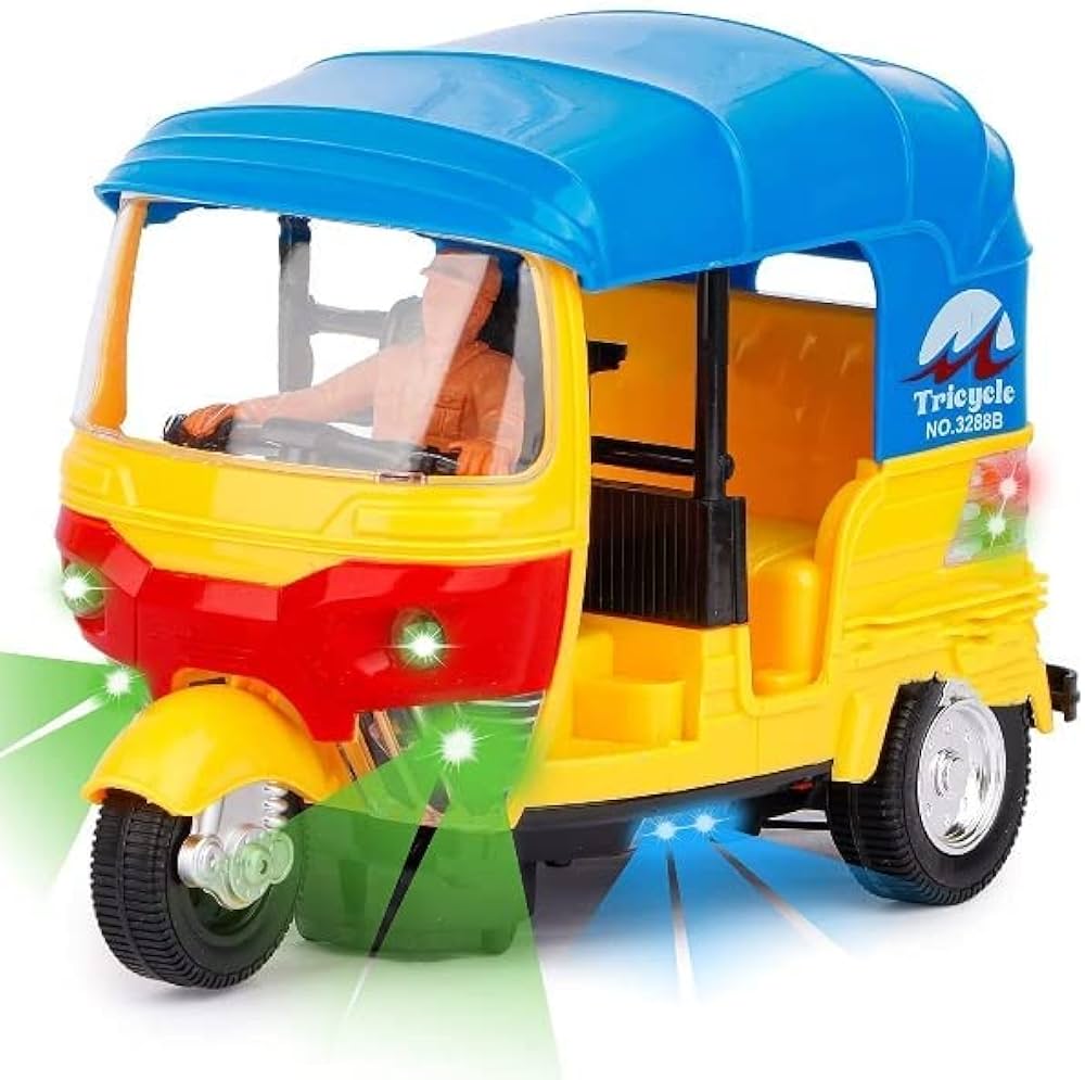 Bring endless fun and learning to your child with this Battery Operated Auto Rickshaw Toy! Designed as a colorful 3-wheel tricycle, this toy offers engaging music and bright LED lights that captivate toddlers and kids alike. The battery-powered operation ensures hours of playtime without interruption, making it perfect for both indoor and outdoor use.