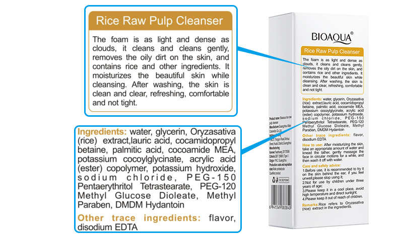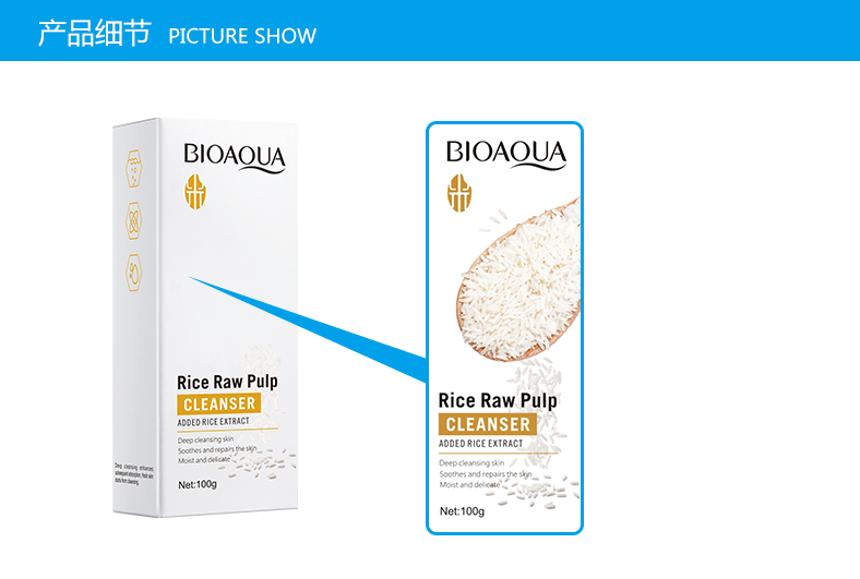 BIOAQUA Face Wash Deep Cleansing Rice Raw Pulp Foam Facial Cleanser - 100g - Face Wash - White,Fresh