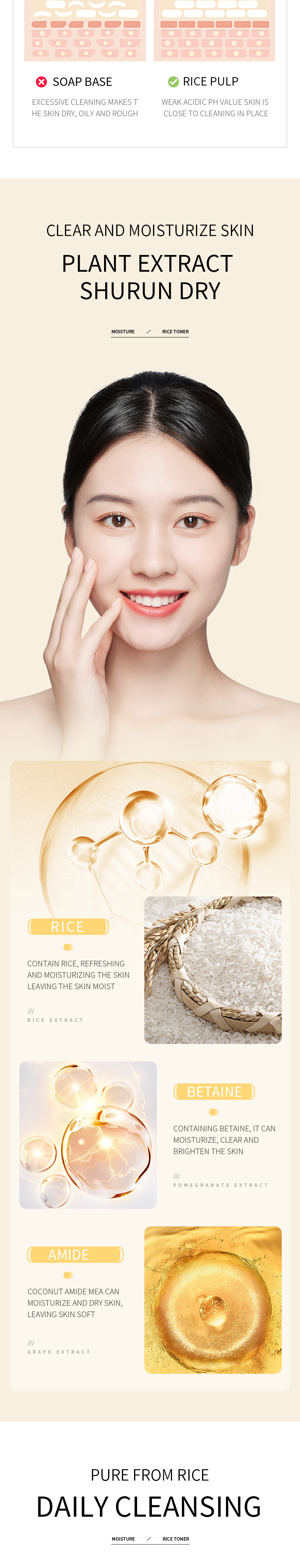 Best Sale Natural Organic Face Wash Anti Aging Whitening Deep Cleansing Rice Foaming Facial Cleanser