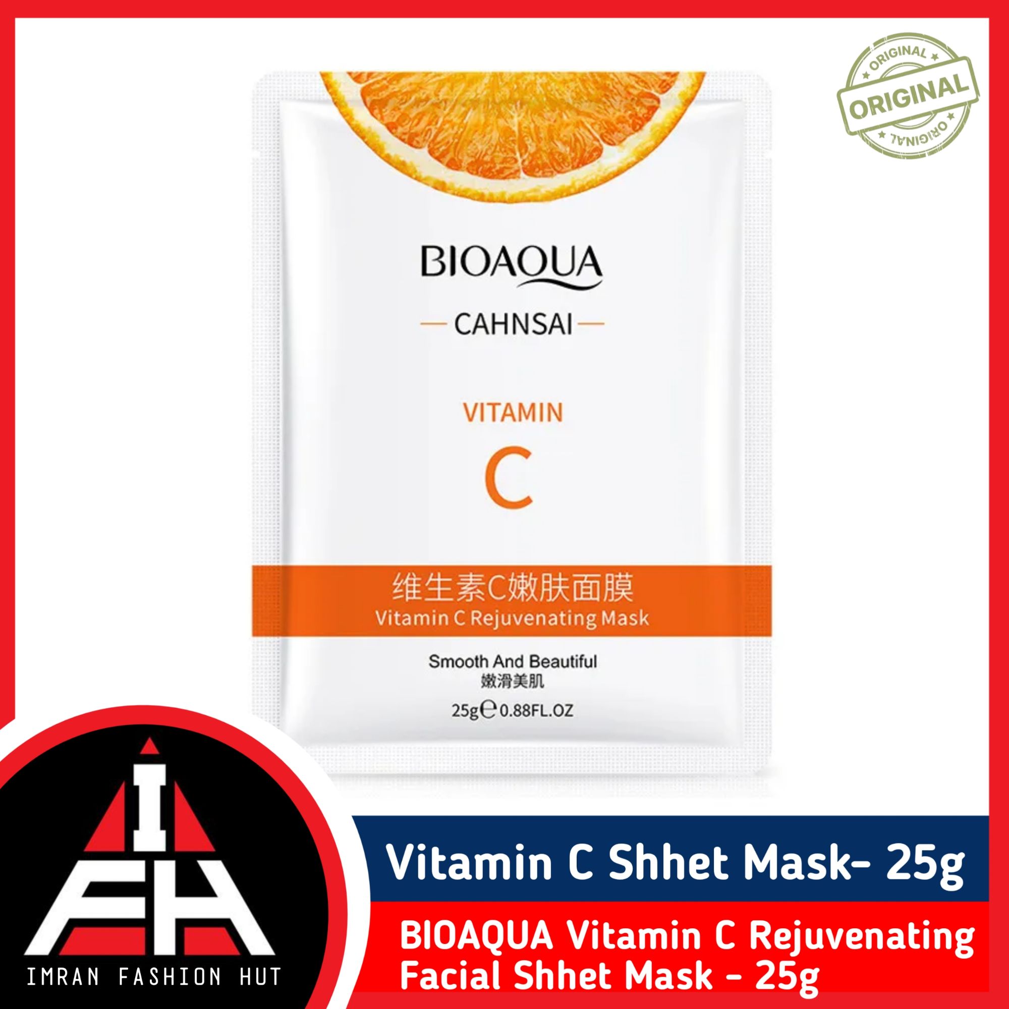 Product Type : Vitamin C Rejuvenating Mask Mask Type : Regular Mask Skin Type : Suitable for all type of skin Brand : BIOAQUA Weight : 25G Ingredients : Water,proylene glycol, glycerin, ethyl cellulose, urea ascorbic acid (vitamin C), EDTA sodium, PEG-40 sour sesame oil, regular (mrth) azolidinyl, flavor. Feature : Contains vitamin C, softens and cares for beautiful skin, moisturizes Quantity : 1pcs per pack