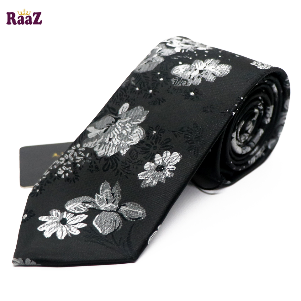 Black White Bloomed Charm Floral Embroidery Design Wedding Tie For Men