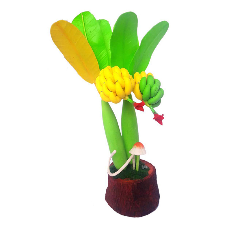 Bonsai Banana Tree Artificial Clay Plants Decoration Interior Showpiece Small Size - (9 inch)