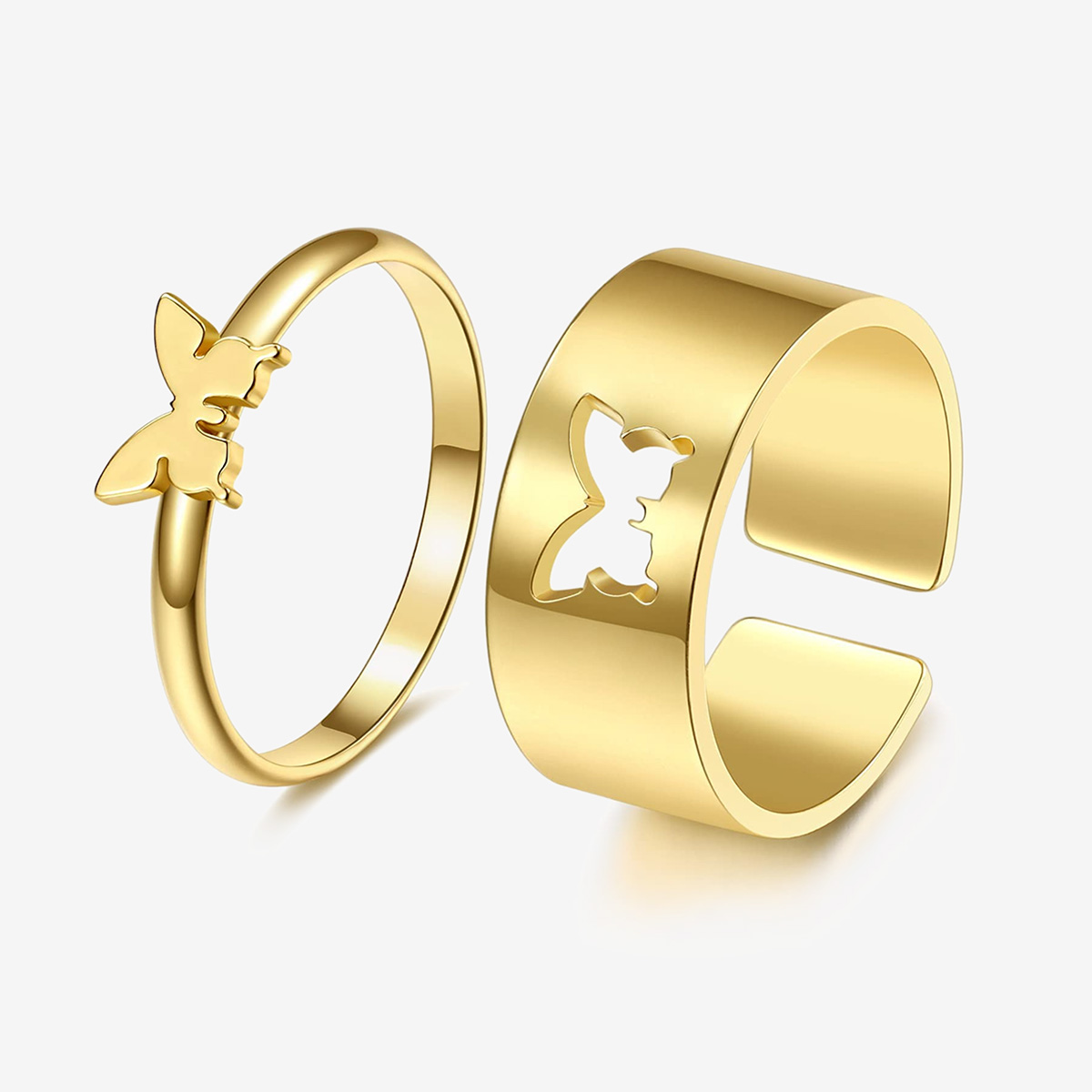 - Butterfly King and Queen Couple Ring Set-2Pcs