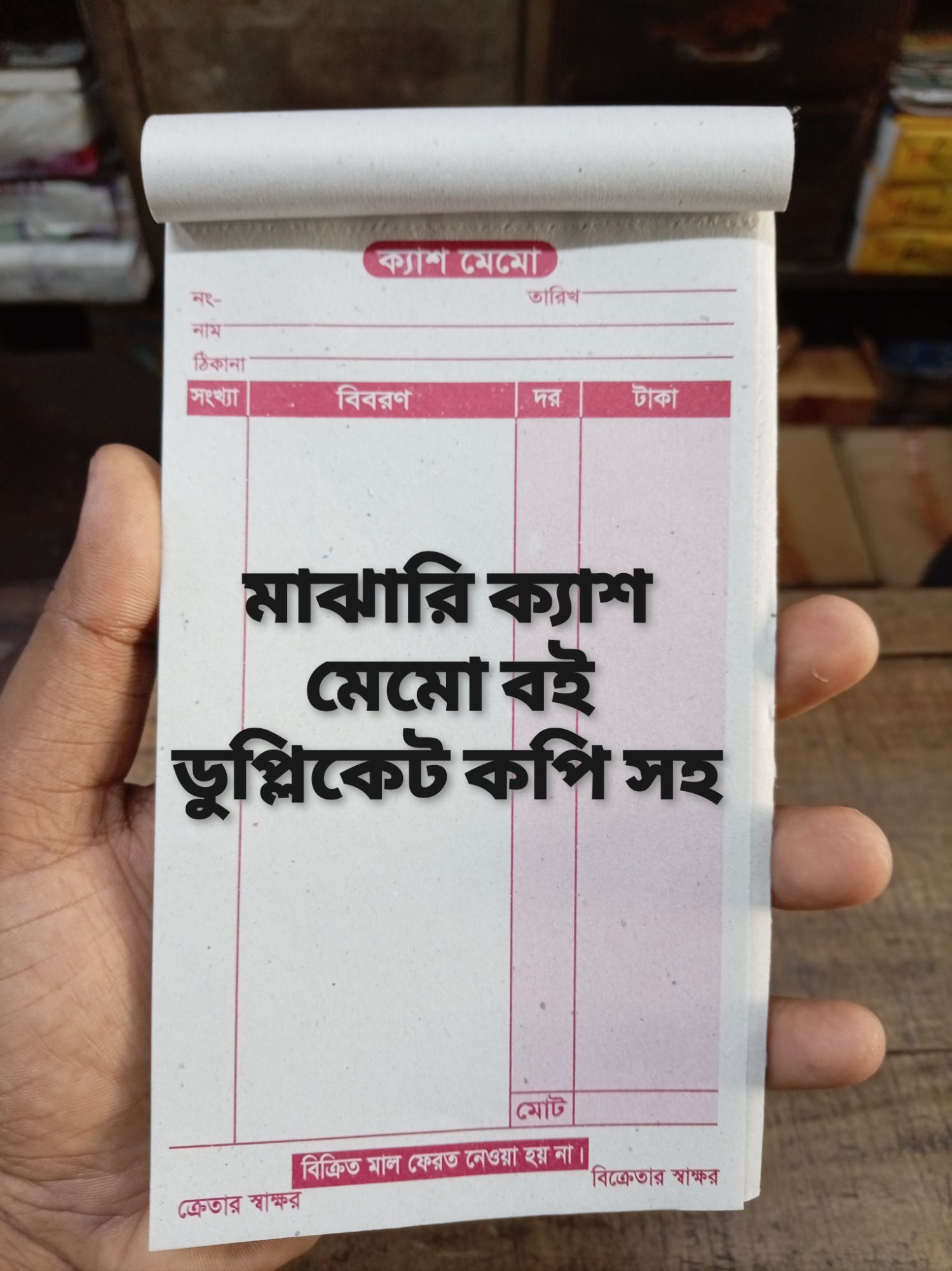 Our Cash Memo Pads are perfect for efficient and professional billing in any business setting. Each pad contains 100 pages—main copies and duplicate copies—for accurate record-keeping. Sold in a convenient, these memo pads are made with good quality paper that ensures smooth writing and clear carbonless duplicates. Designed for daily business use, they serve as reliable billing or receipt books for shops, offices, and other commercial purposes. Proudly manufactured in our own factory in Bangladesh (BD), these pads are crafted with care to support your business documentation needs. Ideal for retailers, wholesalers, and service providers looking for dependable and organized transaction tracking tools.