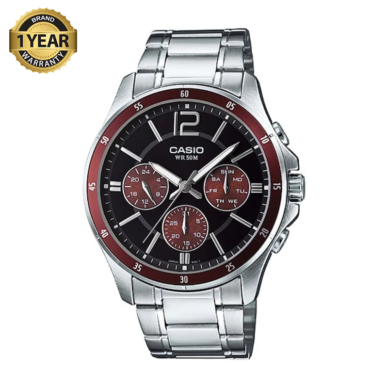 Casio Enticer Multifunction Silver Chain Watch MTP-1374D-5AVDF