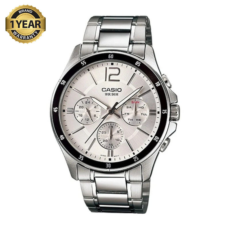 Casio Enticer Multifunction Silver Chain Watch MTP-1374D-7AVDF