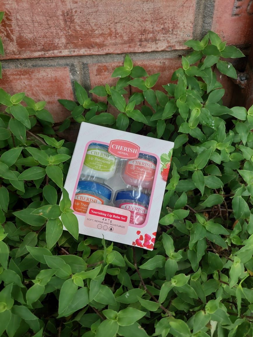 Cherish Herbal Lip Therapies 4Pcs Nourishing Lip Balm Set - Lemon , Strawberry , Orange & Rose flavour for soft smooth lips