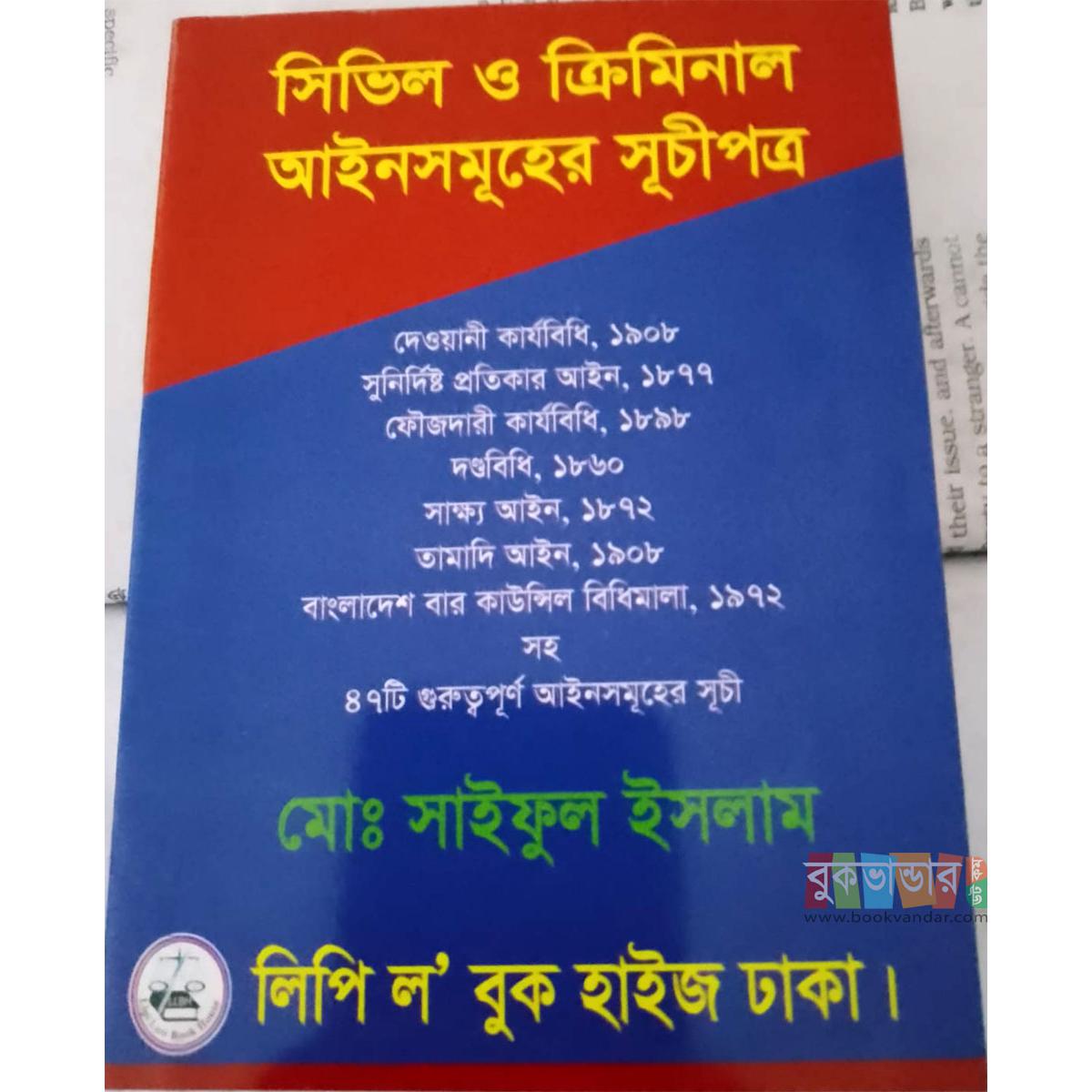 সিভিল ও ক্রিমিনাল আইনসমূহের সুচিপত্র - মোঃ সাইফুল ইসলাম