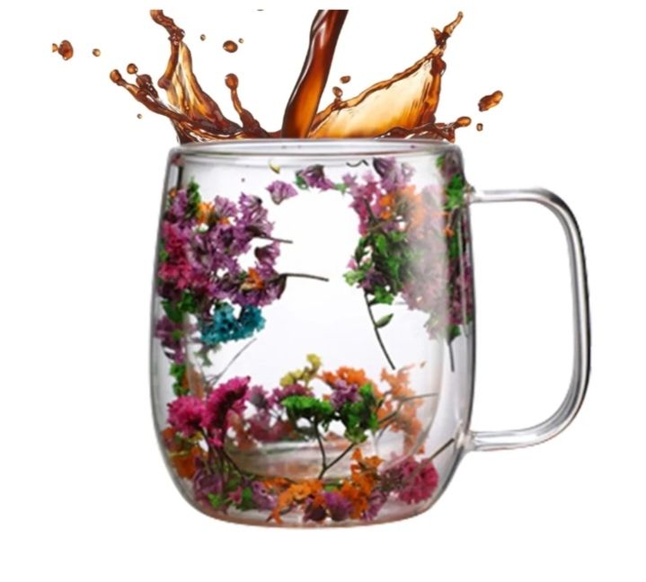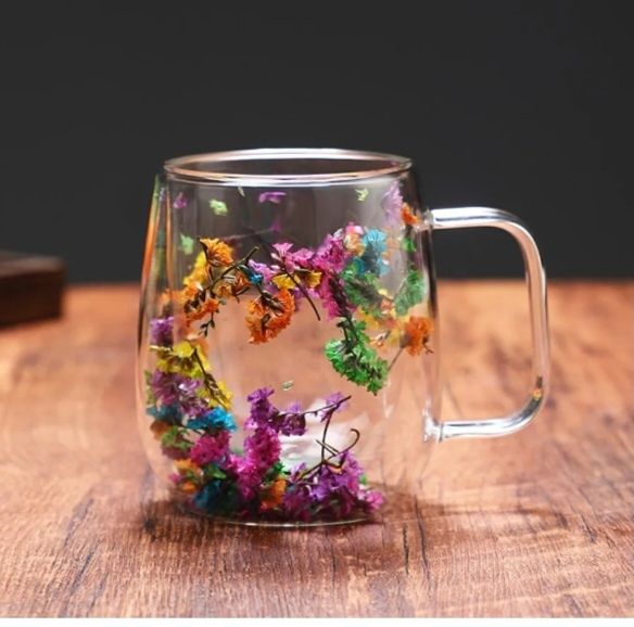 Coffee Mug Elegant Cup With Dried Flower Design Heat Resistant Dried Flower Double Wall Glass Mug For Cold Drinks tea coffee milk water