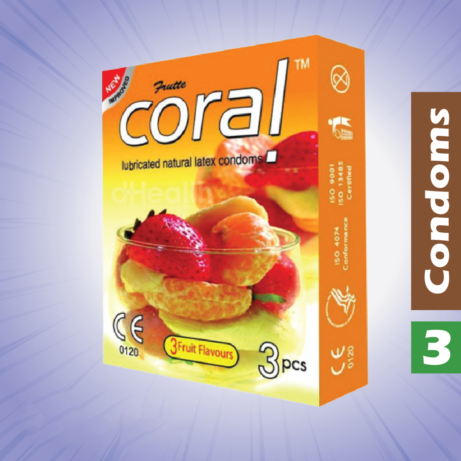 Coral 3 Fruits Flavor Condom Fruits Condom, Single Pack, 3 Pcs