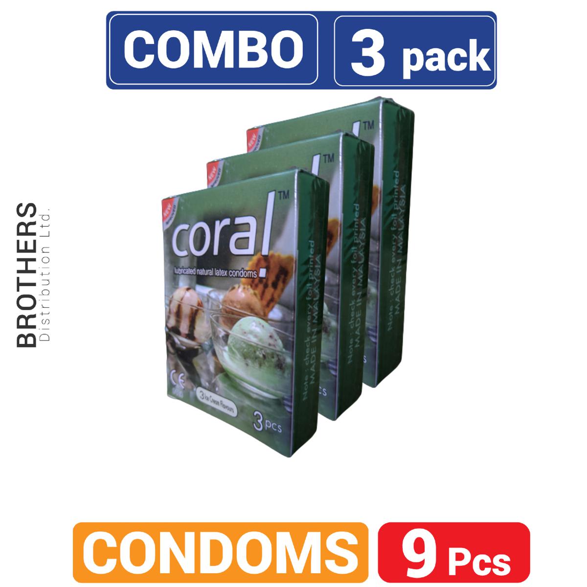 Coral 3 Ice Cream Flavors Lubricated Natural Latex Condoms - Combo Pack - 3x3=9pcs Condom