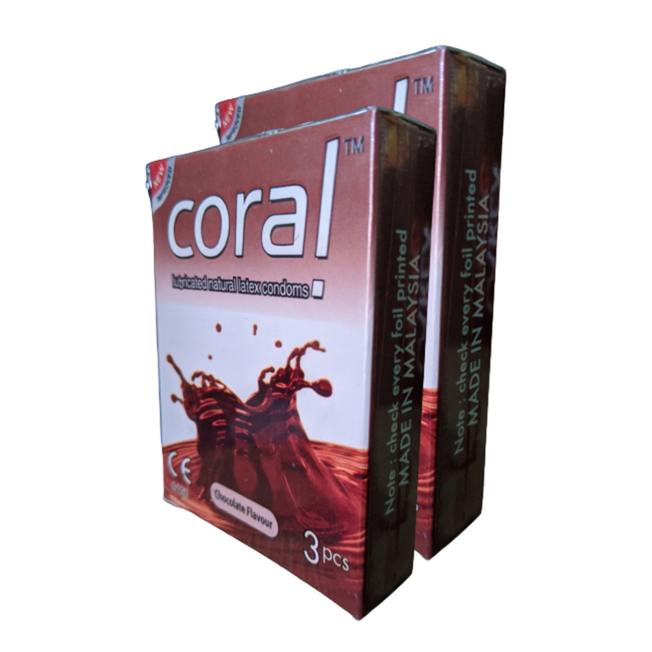 Coral - Chocolate Flavors Lubricated Natural Latex Condom - Combo Pack - 2 Packs - 3x2=6pcs (কোরাল চকোলেট কন্ডম)